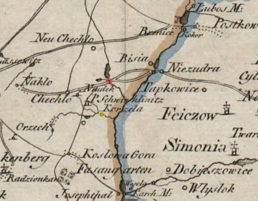 UżytkownikDziękuję Pani Gabrielo za mapę! Czy jest znany rok jej wydania? Wiedziałem, że tam w Ostrożnicy musiał być młyn i w końcu mam kartograficzne potwierdzenie! Dzisiejszy układ stawów i grobli wygląda tam dokładnie tak samo jak na mapie z 1797 roku. Po poszerzonej i podniesionej grobli przebiega tam teraz droga krajowa nr 78, tuż poniżej której jest gospodarstwo najprawdopodobniej w miejscu nieistniejącego już młyna zamieszkiwanego niegdyś przez moich przodków Baczów.