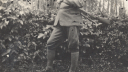 Mój pradziadek Johann Glombitza, syn ekonoma dworskiego Josepha Glombitzy (1836-1905) i Marianny Leibig (1839-1889), konno przed swoim domem w Syryni. Zdjęcie wykonano około 1930 roku.