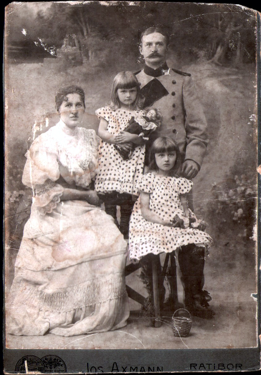 Moi pradziadkowie: Leopold Kaschytza ur. 1869 w Bogucicach, zm. 1954 w Syryni, książęcy leśniczy w Żytnej, powiat Rybnik, Marie Kaschytza z domu Restel ur. 1871 w Kuchelnej, zm. 1963 w Syryni oraz ich dwie córki Elli i Hildegard.
