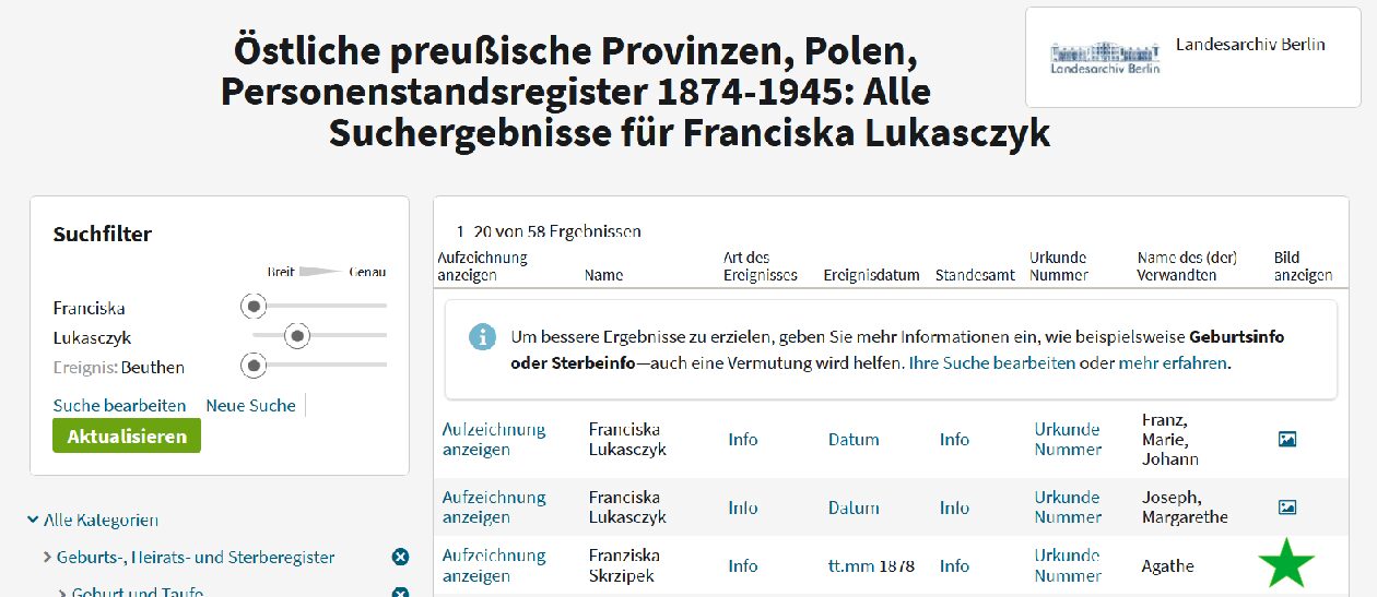 Dzień dobry! Poszukuję metryki mojego pradziadka, Feliksa Skowronek. Doszłam w SBC w czasopiśmie z dnia 30 sierpnia 1932 do informacji, że zmarł wskutek wypadku na kopalni „Eminencja” w Katowicach (dzisiejsza dzielnica Dąb), co pokrywa się z informacjami od taty. Niestety, to wszystko co wiem. Jego syn, a mój dziadek, urodził się w 1928 roku, prawdopodobnie w Rudzie, ale pewności nie mam. Wiem więc tylko że pradziadek zmarł w szpitalu po wypadku w 1932 roku, i miał syna Ewalda (później zmieniono na Jan) Skowronka. Wiem, że osoby o takim imieniu i nazwisku są na Ancestry, niestety nie mam dostępu, zdaję sobie sprawę że informacje są bardzo szczątkowe, ale czy ktoś byłby tak miły i pomocny, żeby sprawdzić te metryki i przesłać mi na maila? ewentualnie wrzucić tutaj… monika.sko91(at)gmail.com z góry bardzo dziękuję!